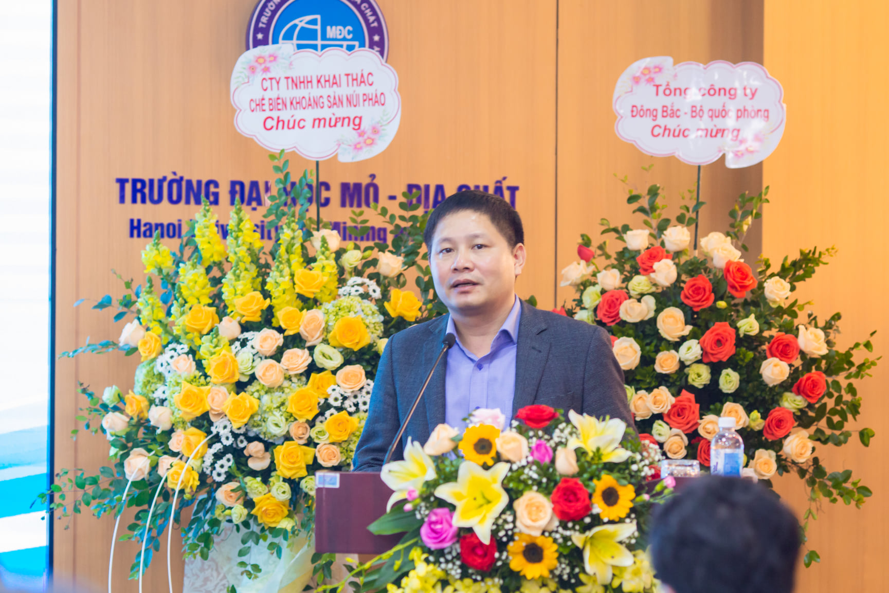 Với cương vị là cựu sinh viên Trường Đại học Mỏ - Địa chất, với trách nhiệm là một doanh nghiệp xã hội, Giám đốc Võ Tiến Dũng - Công ty TNHH Khai thác Chế biến Khoáng sản Núi Pháo phát biểu cam kết sẽ đồng hành cùng nhà trường trong các lĩnh vực đào tạo và tiếp tục hỗ trợ tất cả những gì tốt đẹp nhất cho các bạn sinh viên HUMG để các em có thêm điều kiện học tập.
