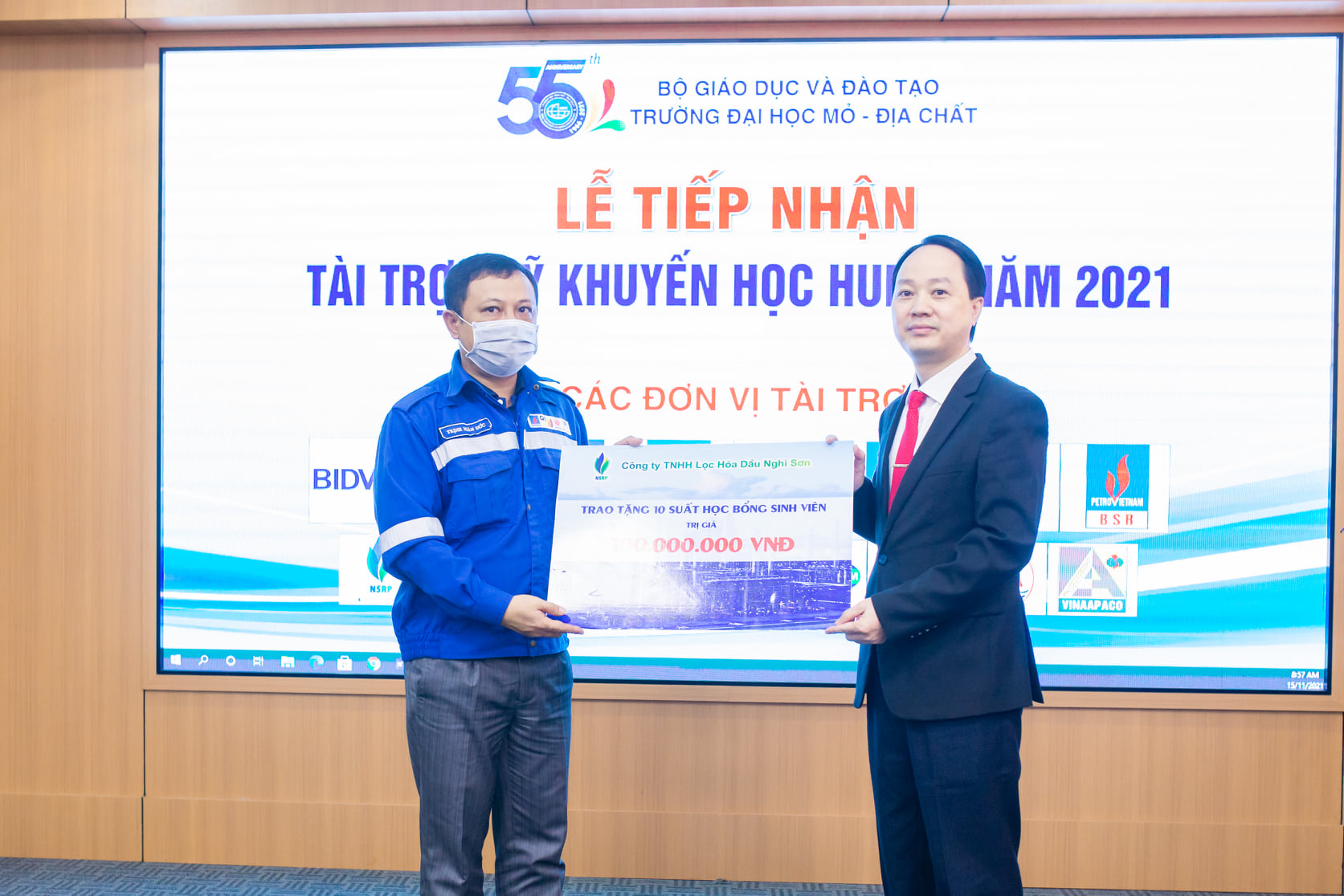Phát biểu tại Lễ tiếp nhận, Ông Bùi Ngọc Dương -Tổng Giám đốc CTCP Lọc - Hóa dầu Bình Sơn cam kết sẽ đồng hành cùng nhà trường trong các công tác đào tạo, NCKH và đặc biệt sẽ tài trợ cho Quỹ khuyến học của Nhà trường trong những năm tiếp theo.