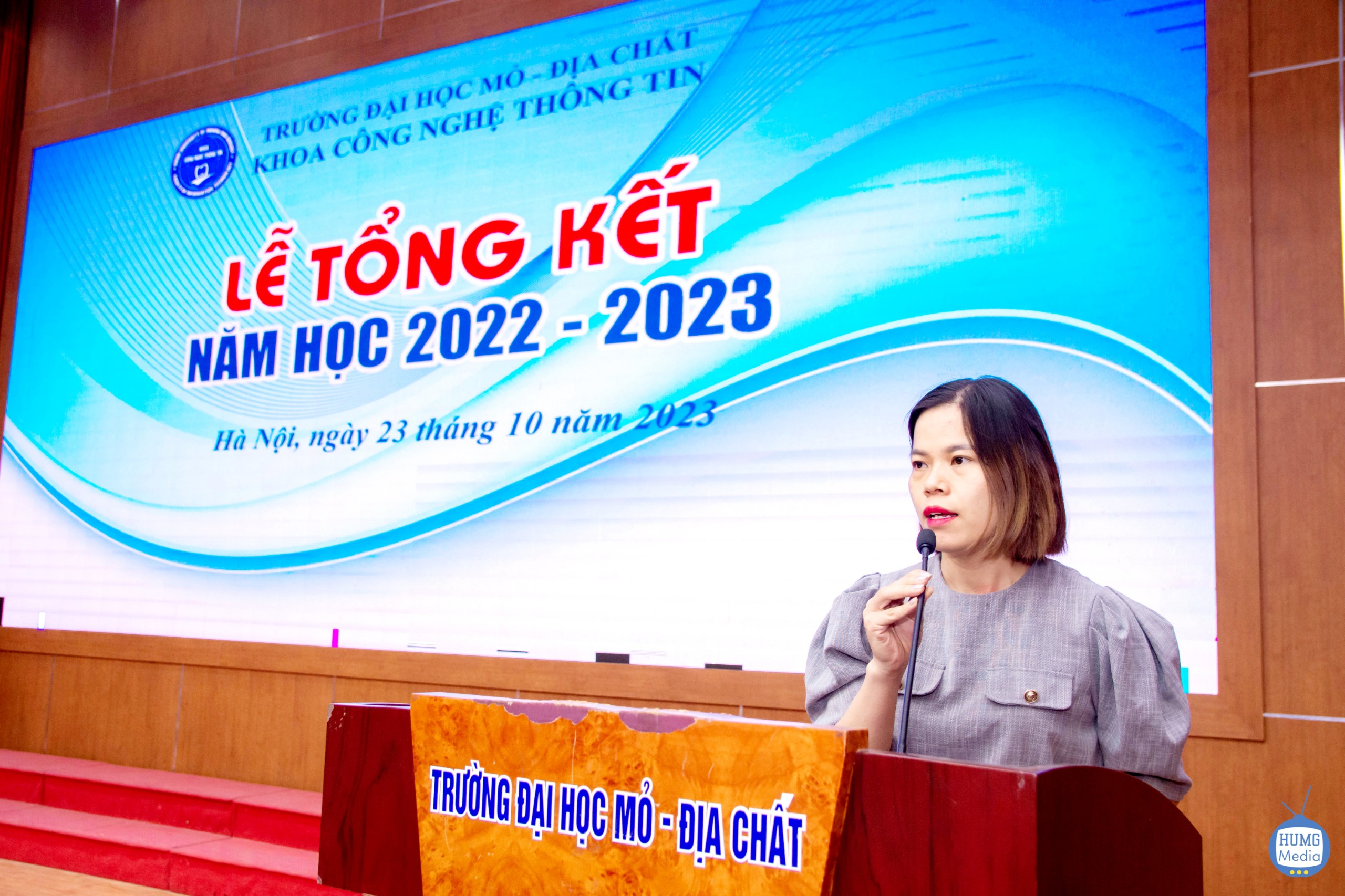 Tại buổi Lễ tổng kết, Ban lãnh đạo Khoa Công nghệ Thông tin đã tổng kết công tác học tập và rèn luyện trong năm học 2022 - 2023, đồng thời đưa ra phương hướng và nhiệm vụ cho năm học mới.